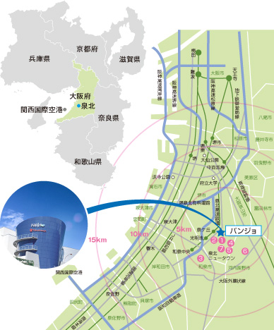 - 車・バス・電車と交通アクセスが良好。泉ケ丘駅の乗降者数は、泉北高速鉄道では最多の1日約4.1万人。また、パンジョから5km圏内の人口は約51万人。10km圏の人口は約96万人と恵まれ、今後も増える見込みです。
