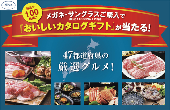 2025年11月16日(日)まで開催!メガネ・サングラス¥11,000(税込)以上お買い上げの方から抽選でカタログギフトが当たります。この機会にぜひご来店ください!