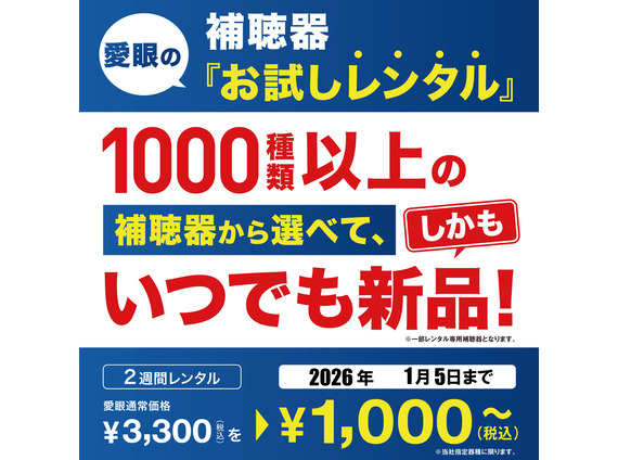 今なら補聴器が¥1,000(税込)でお試しできます!